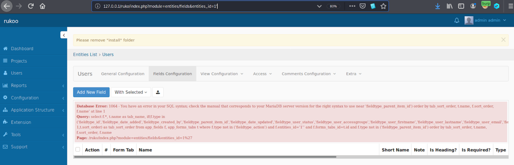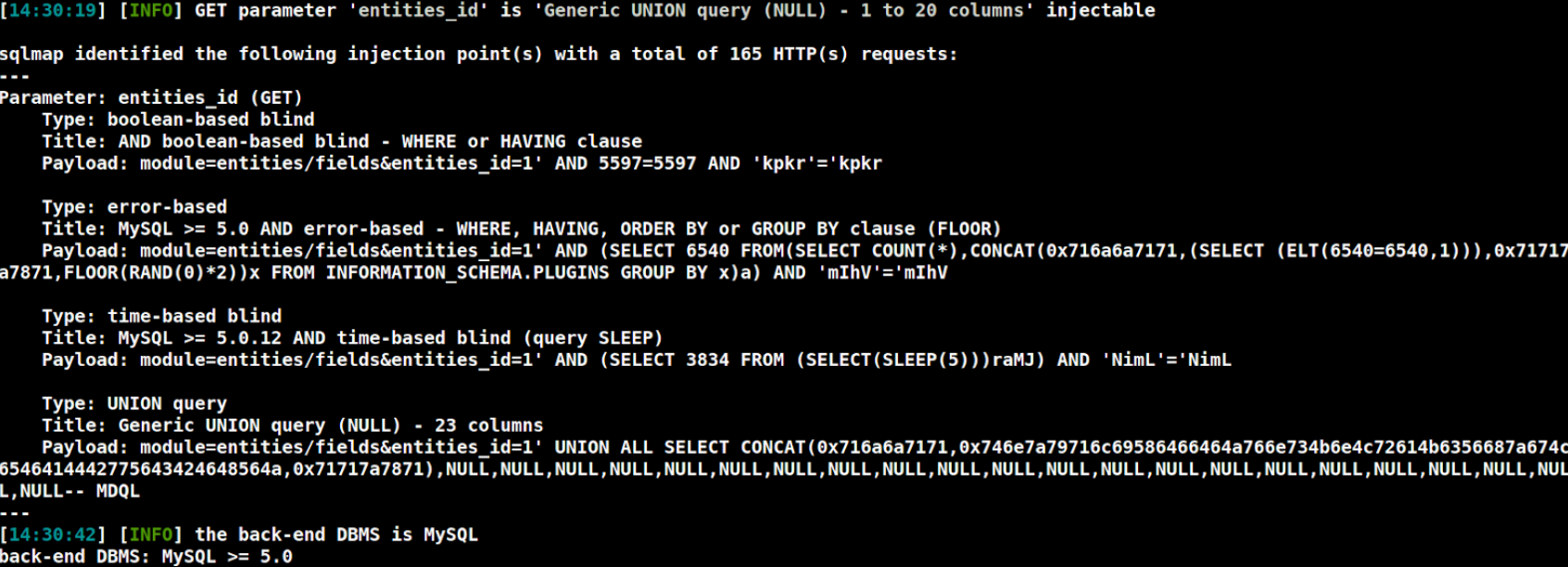 Rukovoditel Version 2.5.2 is affected by SQL injection vulnerability because of improper handling of entities_id parameter.