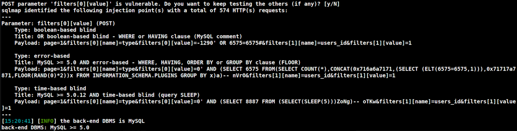 Rukovoditel Version 2.5.2 is affected by SQL injection vulnerability because of improper handling of filters[0][value] parameter.