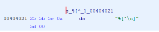 You might be curious about what is format? If we go to the “s_%[^_]_00404021” label, we can learn the format specifier value.