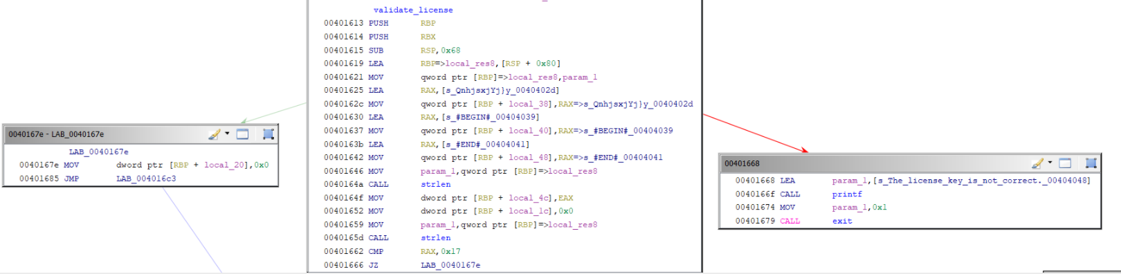 Yeah, if you remember the graph view of the validate_license function, it may seem scary. Let’s look at it step by step.