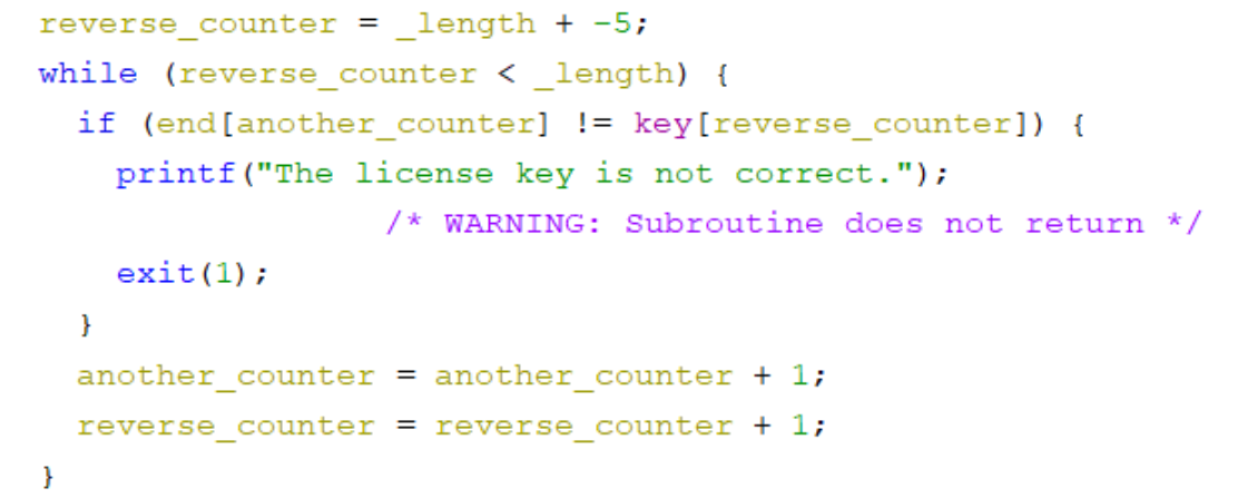 if (end[another_counter] != key[reverse_counter]) {