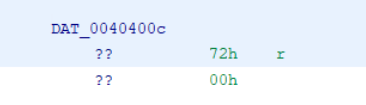 Firstly, we see the [DAT_0040400c], this is probably the second argument of the fopen function because as a x64 Windows calling convention the first argument is copied to RCX and the second one to RDX. We know that the first argument of the fopen function is filename so param_1 is the name of the file to be read. As you can see above from the signature of the function, second argument is the mode. If we go to the address of the label DAT_0040400c, we can see the mode char variable. As you can see below, the file will be opened in read mode (“r”), this makes sense.